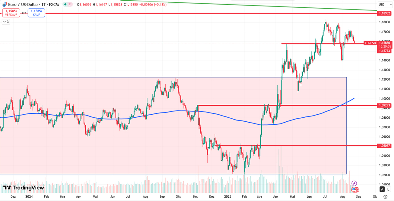 Sollten beide Komponenten hingegen mindestens 3 Punkte schwächer ausfallen, dürfte das den Euro belasten. Ein Einstieg am Widerstand bei 1,17 oder nach einem Bruch der 1,1580 mit anschließendem Pullback wäre für mich interessant.
