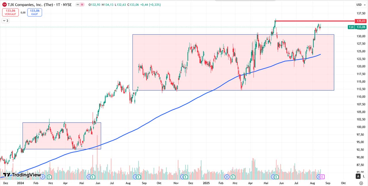 Mit über 4.800 Filialen weltweit und einer klaren Fokussierung auf Off-Price ist TJX in seinem Segment stark aufgestellt. Das Unternehmen profitiert strukturell vom Trend zu preisbewusstem Einkaufen. Ein Vorteil, der sich in Zeiten hoher Inflation oder schwacher Konsumdynamik noch verstärkt.