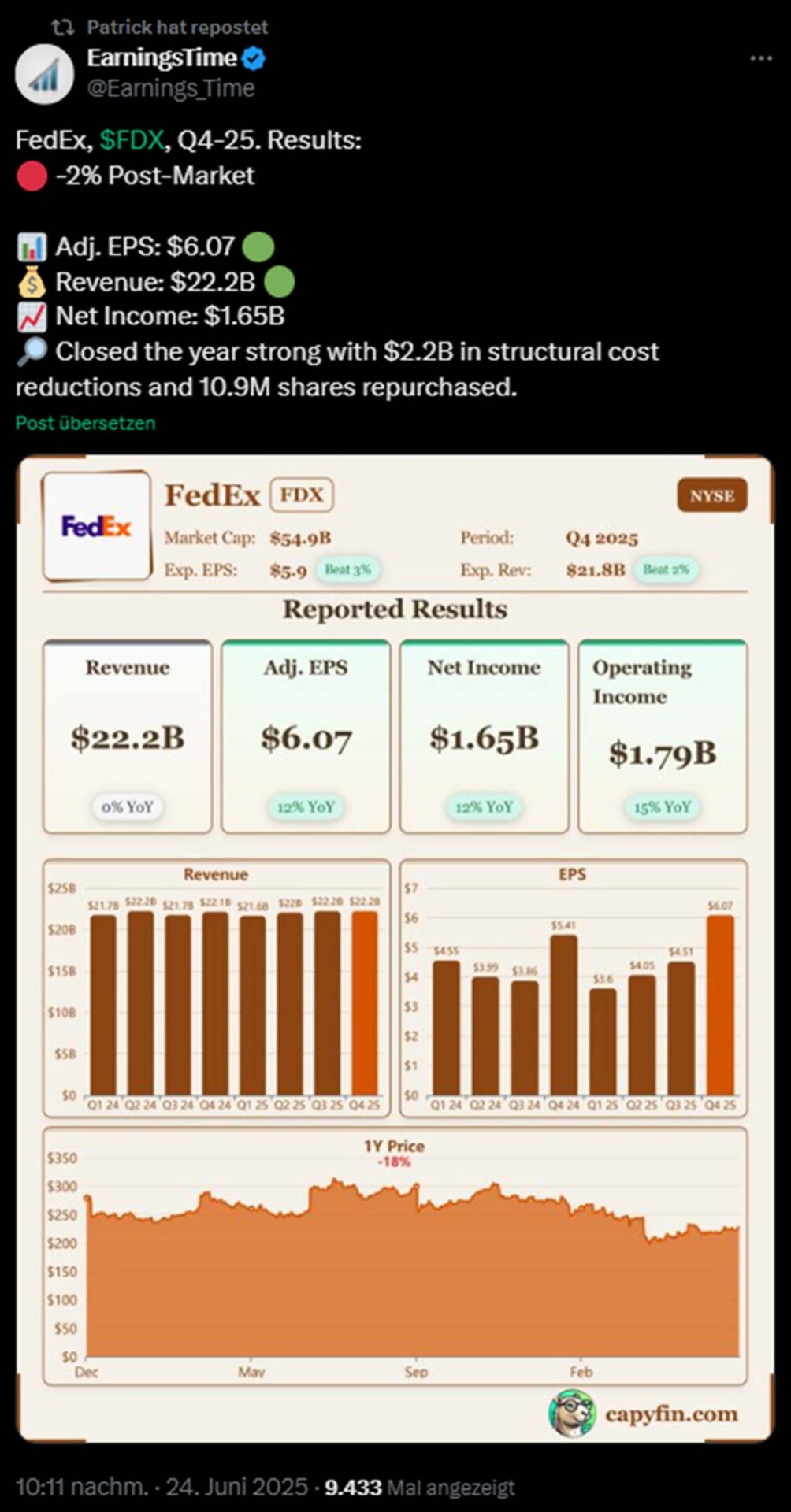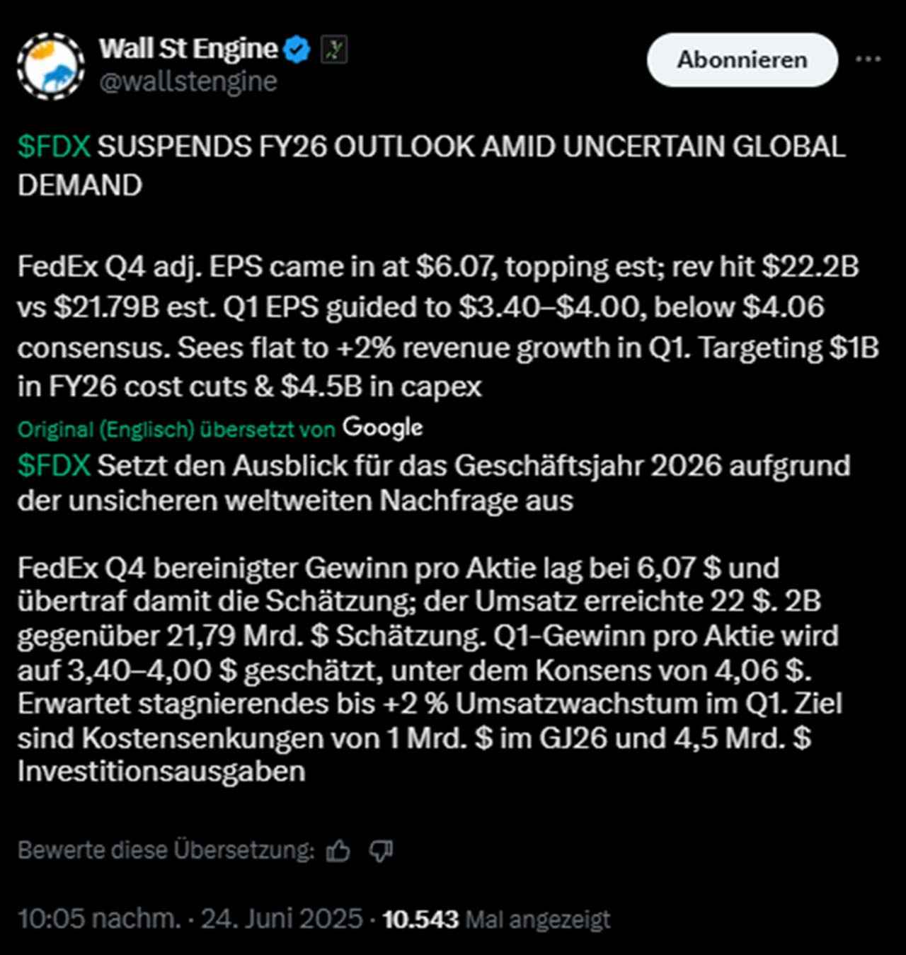 Die aktuellen Quartalszahlen von FedEx lagen über den Erwartungen: