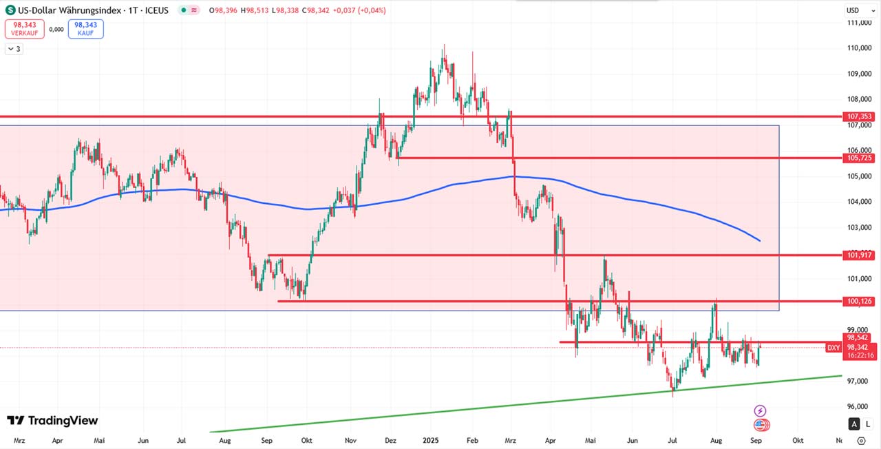 Der DXY steht an einer entscheidenden Marke. Ob er den Abwärtstrend fortsetzt oder eine Gegenbewegung startet, könnte maßgeblich vom heutigen ISM bestimmt werden. Wichtig bleibt die Zone um 96,40/97 USD.