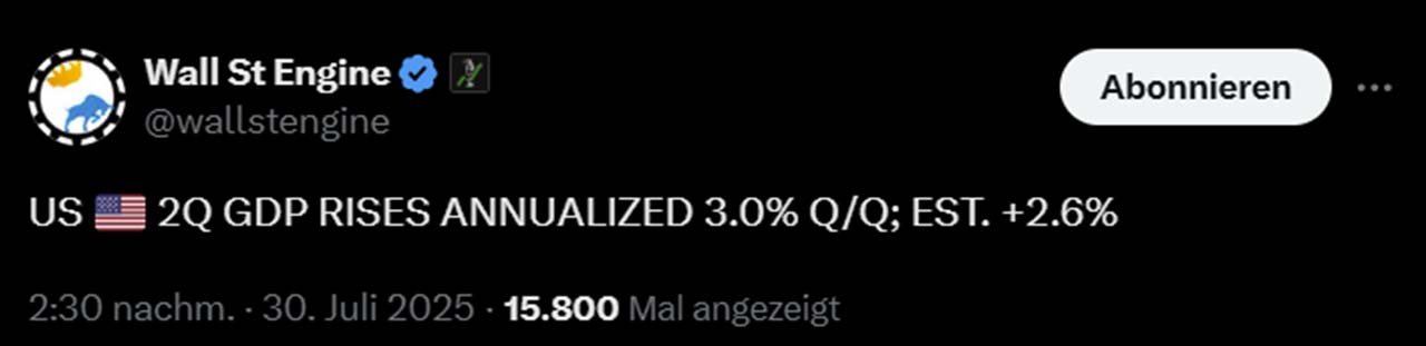 Gleichzeitig sinkt der Inflationsdruck spürbar. Die alternative Inflationsmessung von Truflation liegt mittlerweile unter 2 Prozent. Auch wenn diese Daten nicht mit offiziellen CPI-Zahlen identisch sind, spiegeln sie doch eine klare Tendenz: Die Preisdynamik hat sich „derzeit“ abgeschwächt, ohne dass die Wirtschaft in eine Rezession rutscht.