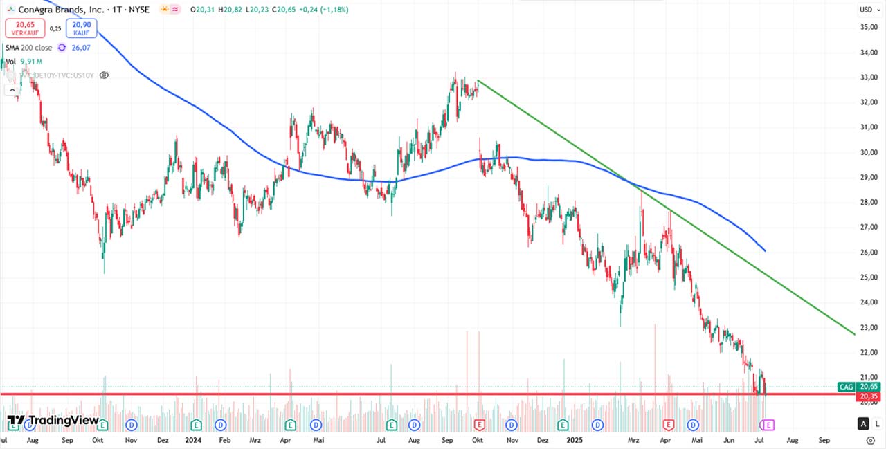Conagra kämpft mit steigenden Rohstoffkosten, schwankender Nachfrage und Gegenwind im Einzelhandel. Der Kurs der Aktie spiegelt diese Belastungen deutlich wider. Umso spannender wird, ob das Management mit den heutigen Zahlen eine Trendwende einleiten kann, oder ob sich die Schwäche fortsetzt.
