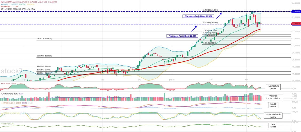 - Nächste wichtige charttechnische Unterstützungen: 22.519, 22.226, 21.971, 21.631
