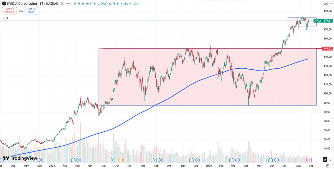 Sollten die Quartalszahlen über den Erwartungen liegen und Nvidia zusätzlich einen starken Ausblick liefern, könnte das den bestehenden Aufwärtstrend weiter bestätigen. In diesem Fall würde ich bei einem Rücksetzer an die obere Begrenzung der Range nach Einstiegssignalen suchen. Alternativ wäre auch nach einem kräftigen Anstieg eine neue Konsolidierung interessant, um daraus ein sauberes Long-Setup abzuleiten.