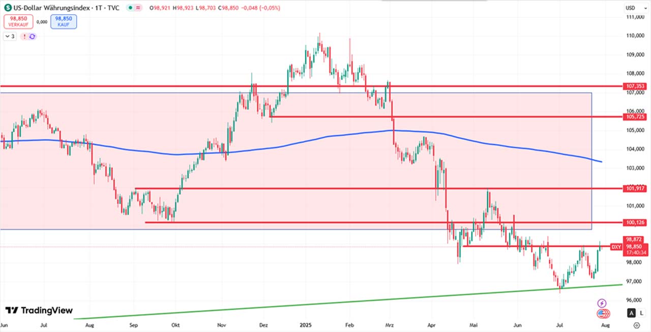 Liegt der core PCE mindestens 0,2 Prozent über den Erwartungen, wäre das ein bullisches Signal für den Dollar. Dann würde ich auf mögliche Long-Setups im Bereich der Unterstützung bei 98 oder bei einem Ausbruch über 99 in einem Rücksetzer schauen.