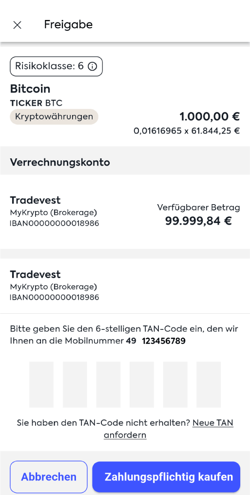 Ja, das funktioniert auf unserer Trading-Plattform über dieselbe Trading-Oberfläche wie beim Wertpapierhandel: Krypto kaufen und verkaufen Sie direkt über unsere App.
